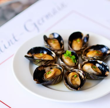 MOULES À LA VAPEUR AU VIN BLANC ET À L’AIL .